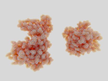 Human insulin hormone molecule, space filled model, 3D illustration. Drug in diabetes treament