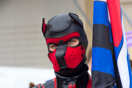Graz, Austria - June 11, 2021: People wearing leather suits at the annual gay parade in Graz, Austria.