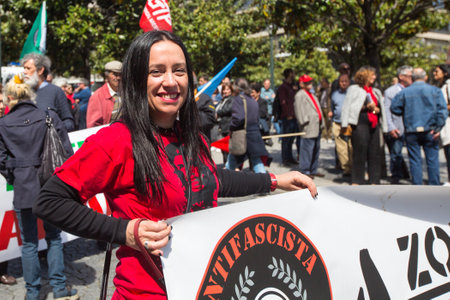 MILAN, ITALY - APRIL 29: Manifestation against fascism and nazism in Milan on 25 April 2014. People took the streets in Milan to protest against neo nazis and fascists groups present in Milan