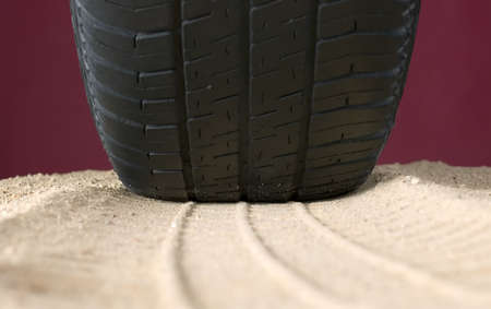 Miniature tire. Concept of car maintenance and service center. Vehicle tire repair and replacement equipment.