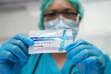 Doctor show rapid antigen test Covid -19 self repid test set