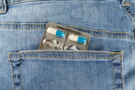 Blister pack of pills in the jeans pocket