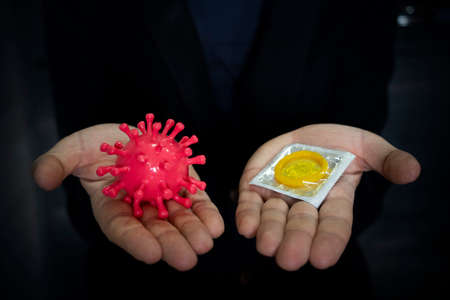 The concept of choice. Sexually transmitted virus or condom. safe sex.