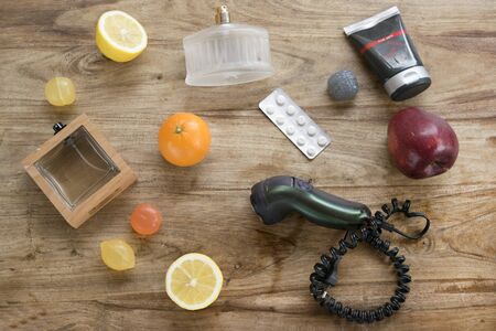 concept of lifestyle health and beauty of the men in flat lay photo