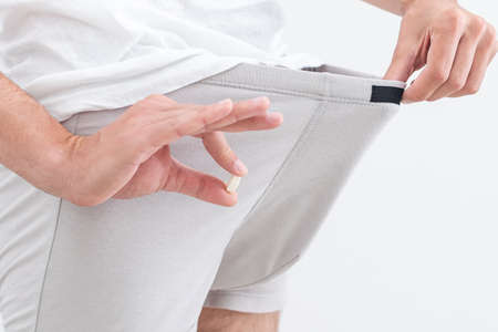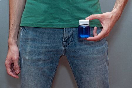Pills for raising or increasing potency. Tablets for male power in sex. Medicine concept. Man health