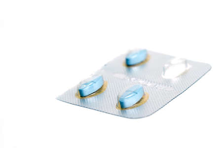 Packages of tablets in white with an emphasis on four pills in front