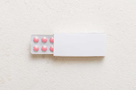 The packaging of pills on the table . On a beige background