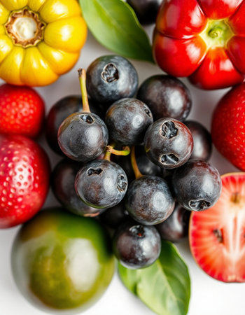 An enticing background featuring a mix of colorful fruits, vegetables, and berries, ideal for promoting healthy eating