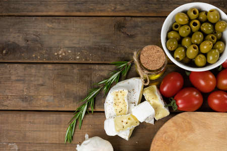 Cheese with olives, party snack appetiser with copyspace