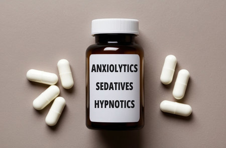 Anxiolytics, sedatives, and hypnotics inscription text words phrase on the background of packaging with pills