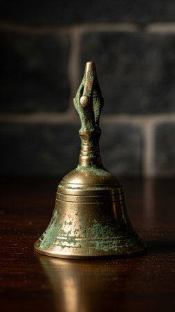 A worn, vintage service bell on an antique desk, evoking nostalgia for classic service traditions.