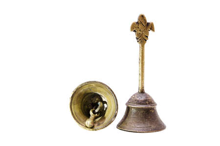 Two vintage decorative bells feature intricate designs and a classic appearance. Perfect for showcasing craftsmanship, these bells evoke a sense of nostalgia and elegance.