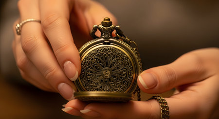 A close-up view of hands holding an antique gold pocket watch with intricate filigree details. The image evokes themes of time management, nostalgia, history, and the value of time.