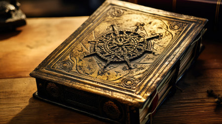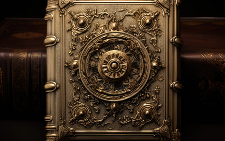 An exquisite vintage bronze locket rests on an old book, showcasing intricate ornamental design, evoking nostalgia and artistic elegance for inspired moments.