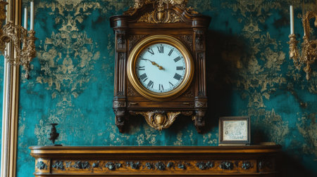 Timeless elegance captured in this rustic blue vintage clock with Roman numerals. Perfect for adding a touch of history to any space. Generated A.I.
