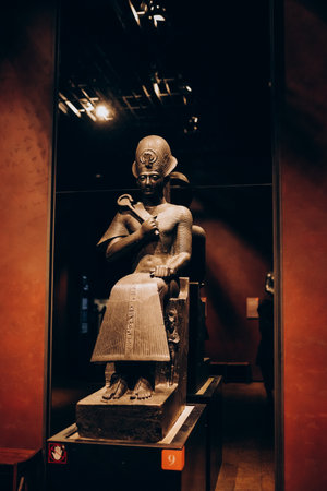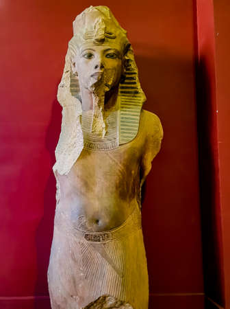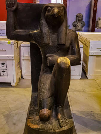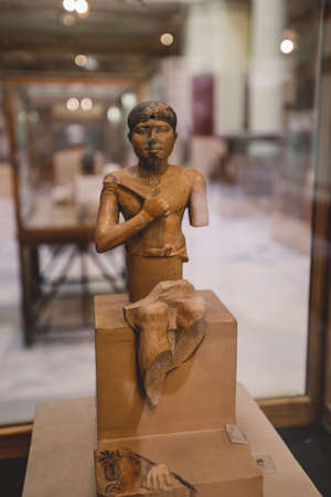 Cairo, Egypt - November 02, 2021: Close up view to the Ancient Stone Statues in the Cairo Egyptian Museum, the oldest archaeological museum in the Middle