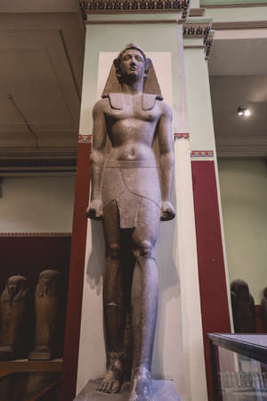 Cairo, Egypt - November 02, 2021: Big Stone Ancient Egyptian statues in the Cairo Egyptian Museum, the oldest archaeological museum in the Middle East