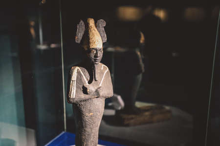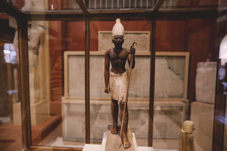 Cairo, Egypt - November 02, 2021: Small Stone Ancient Egyptian figurines and statues in the Cairo Egyptian Museum, the oldest archaeological museum in the Middle East