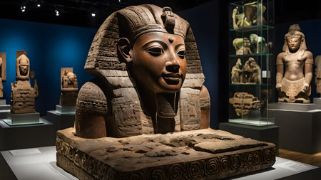 Cairo, Egypt - December 17, 2021: Detail from Egyptian Museum in Cairo, Egypt. It is founded at 1902 and have more than 120.000 ancient Egyptian items.