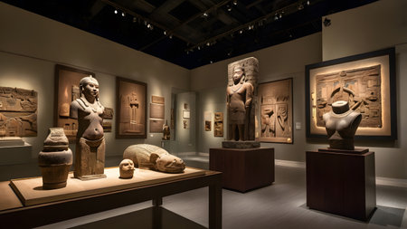 Explore a stunning display of ancient pottery, showcasing intricate designs and craftsmanship in a modern museum setting. Perfect for heritage enthusiasts.