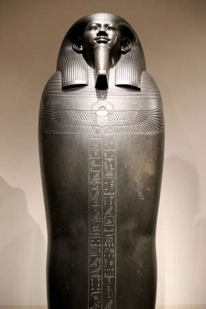 Cairo, Egypt - November 02, 2021: Majestic Ancient Sarcophagus with Hieroglyphics symbols in the Cairo Egyptian Museum, the oldest archaeological museum in the Middle East