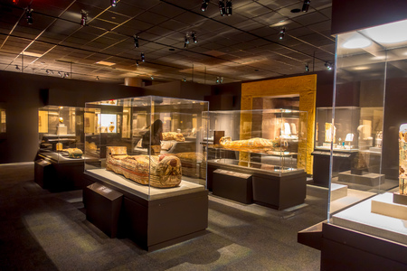 HOUSTON, USA - JANUARY 12, 2017: Exposition of different sarcophagus inside of the building in the Ancient Egypt area, in National Museum of Natural Science in Orlando Houston in USA
