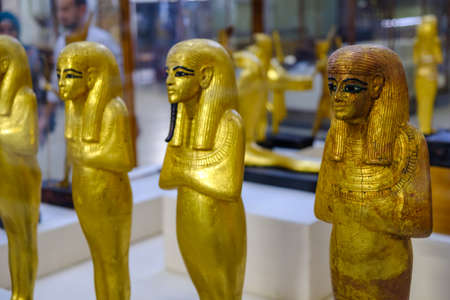 Cairo / Egypt - May 25th 2019: Golden statuettes depicting pharaoh, Museum of Egyptian Antiquities (Egyptian Museum)