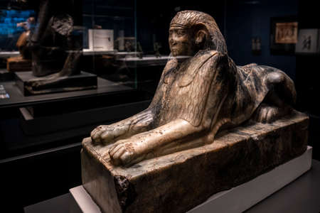 Turin, Italy, March 8 2013: profile of an egyptian sphinx statue at he Turin's Egypt Museum