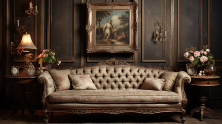 Discover a breathtaking vintage parlor filled with elegant furniture, ornate decor, and soft colors that create a cozy and sophisticated atmosphere.