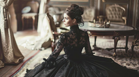 Portrait of a young woman in elegant black lace attire