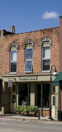 Antique shop facade in an old building at an angle