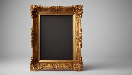 A beautifully ornate gold vintage photo frame, standing out against a soft gray background, perfect for classic decor and art