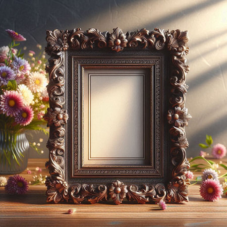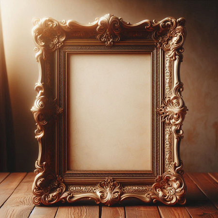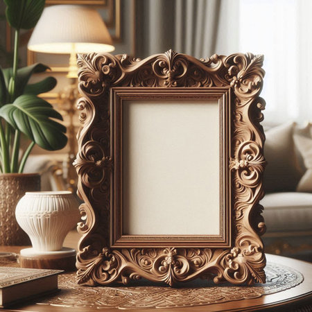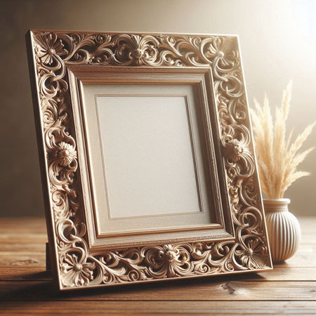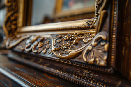 A vintage frame with ornate carvings and gold accents --ar 3:2 Job ID: 83ec1967-4839-401f-b637-8959c8736b78