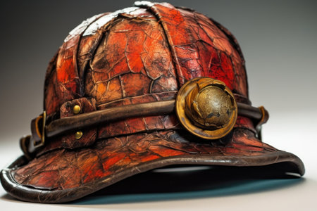 Mining helmet with integrated lamp, showing rugged construction and dust accumulation in crevices