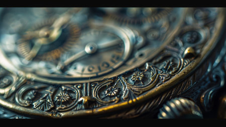 A shallow depth of field shot of an od antique watch highlighting the delicate engravings and patterns etched into its metal casing