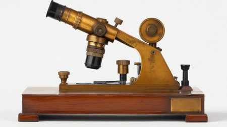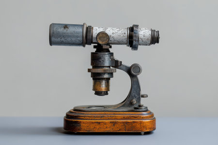 This vintage microscope beautifully captures the essence of historical scientific instruments, showcasing intricate craftsmanship and elegant design elements.