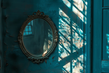 AI Generated. Antique Oval Mirror on a Distressed Teal Wall