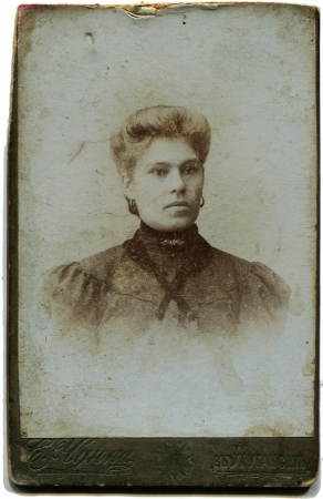 RUSSIA - CIRCA the end of 19 - early 20 century An antique photo shows woman, Lugansk, Russian Empire, now UkraineRussian text Umanskiy photographer , Lugansk