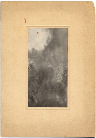 Vintage photo with faded edges gripped in hand, revealing a haunting black-and-white landscape