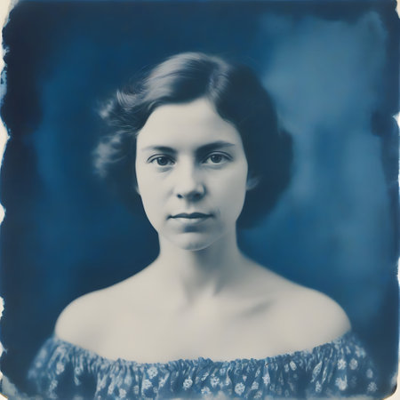 A person examines an old portrait in a collection of vintage photographs, surrounded by aged images and memorabilia, evoking nostalgia and curiosity about the past.