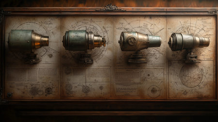 A vintage analytical instrument showcasing a paper cylinder in an authentic historical workshop setting. Perfect for themes of innovation and nostalgia.