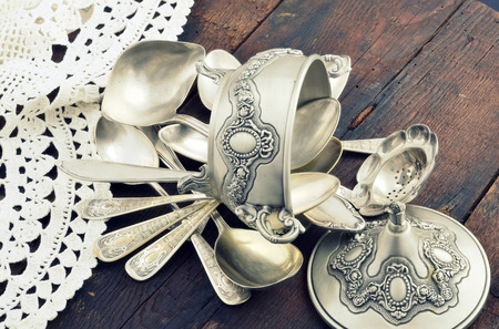 vintage old silverware on a wooden table