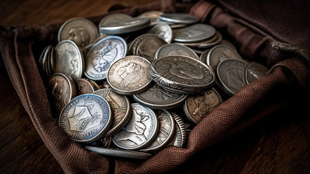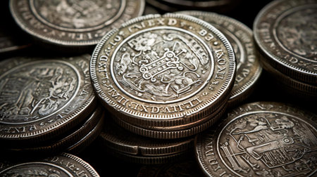 A detailed view of an assortment of vintage silver coins showcases their intricate designs and rich history, perfect for collectors and enthusiasts alike.