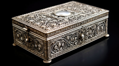 antique jewelry storage, vintage silver jewelry box with intricate engravings and interior mirror, a classic way to store and protect your jewelry with style