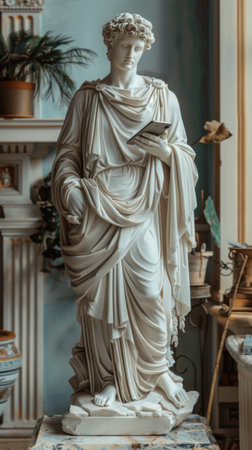 Revered historical figure in classical statue detailed features and attraction