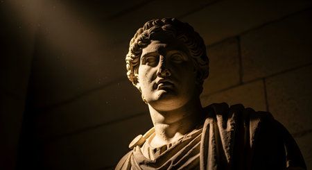 ancient roman emperor statue in dark lighting