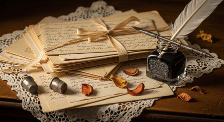 old letters and antique family photos parents, grandfather; grandmother; children nostalgic vintage pictures from ca 1900