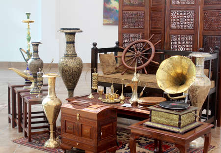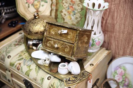 exhibition of antiques on local street market, Tbilisi, Georgia. High quality photo