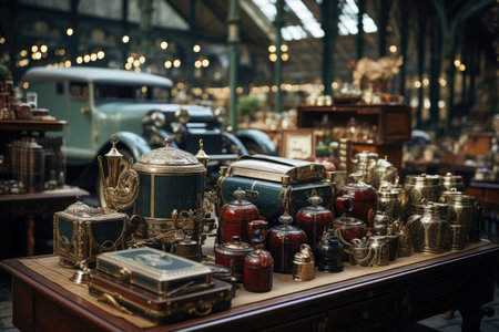 Faintly blurred images of secondhand treasures and curious trinkets at the indoor flea market
