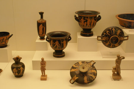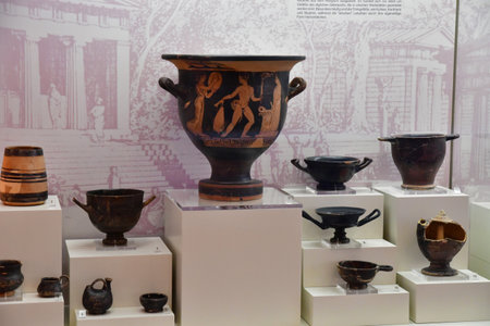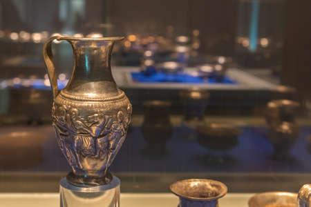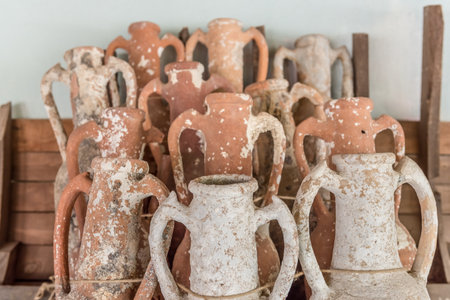 Antalya, Turkey - May 20, 2019: Ancient pottery, vessels and amphorae in Antalya Museum of Antiquities.